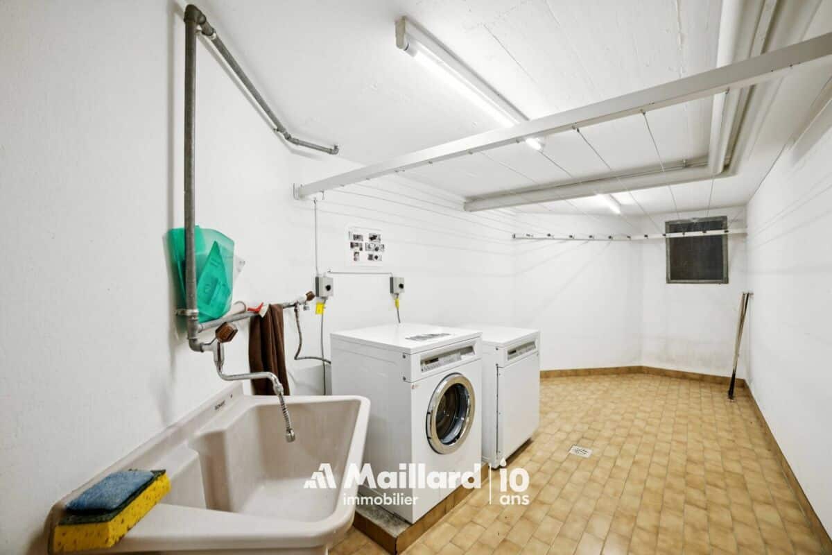 Au rez inférieur, une buanderie commune, un local à vélo ainsi qu'une cave privative complètent les annexes.