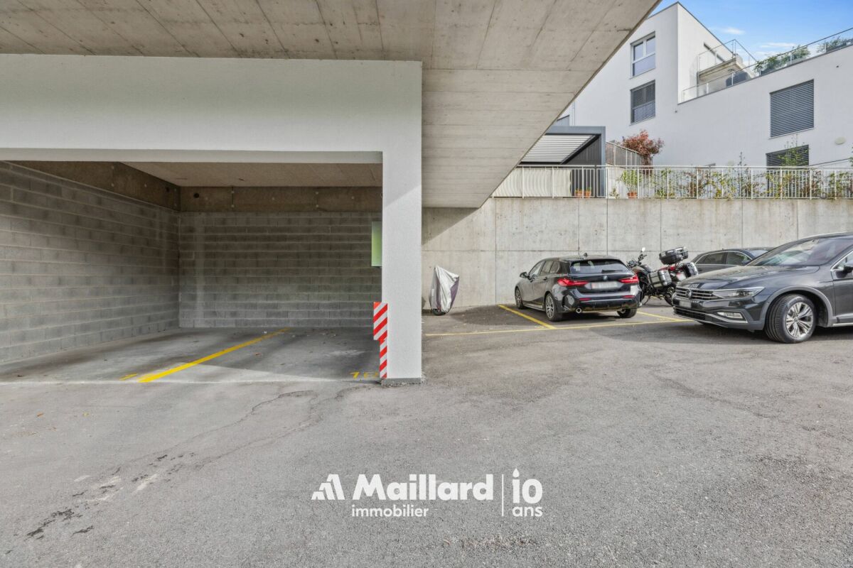 Deux places de parc, une couverte et l'autre partiellement, sont attribuées à ce lot en sus du prix de vente (CHF 45'000.-).