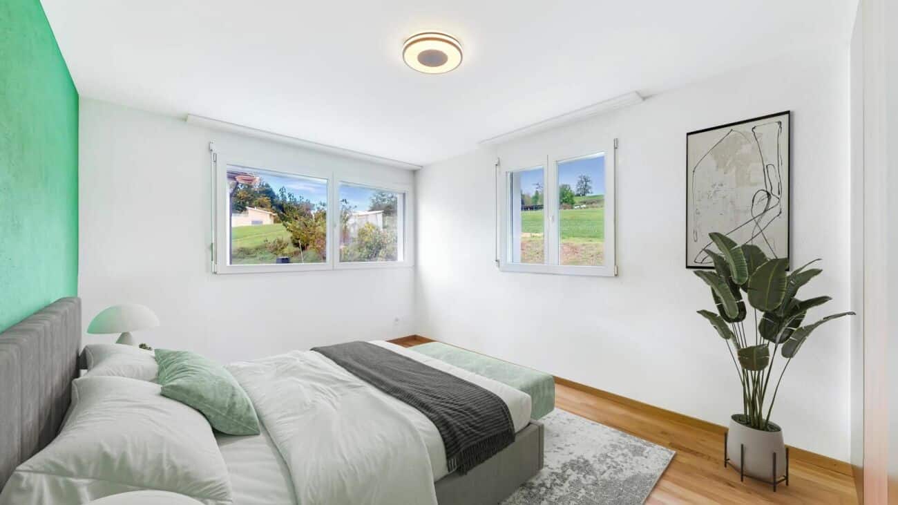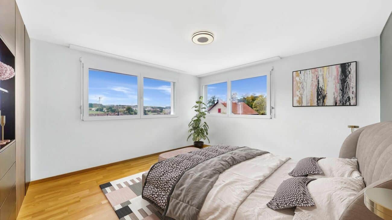 Située sur les hauteurs du charmant village de La Corbaz, elle offre un cadre de vie paisible et une vue imprenable sur la campagne environnante et les Préalpes, le tout sur une parcelle de 718 m².