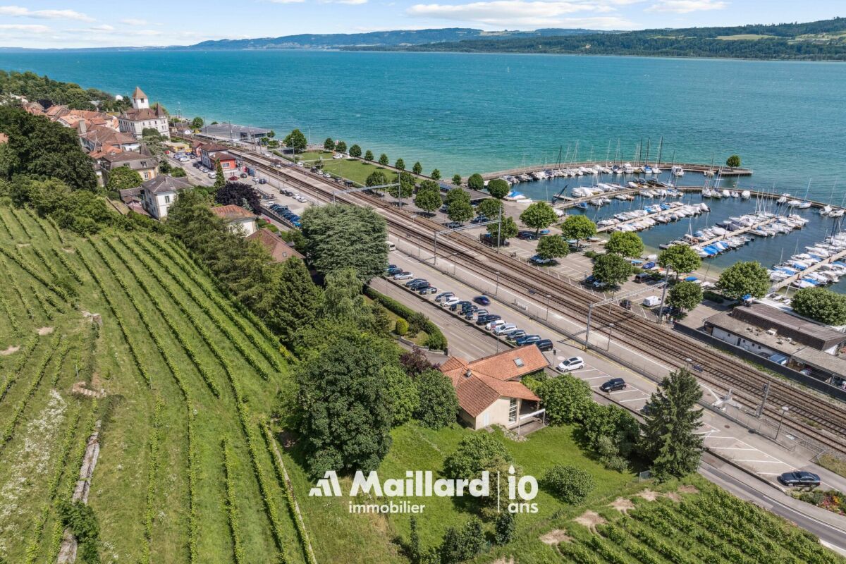 Propriété d'exception au bord du lac de Neuchâtel comprenant une maison de maître de 3 appartements et une maison individuelle implantées sur une vaste parcelle de plus de 3'800m² à deux pas du lac de Neuchâtel.
