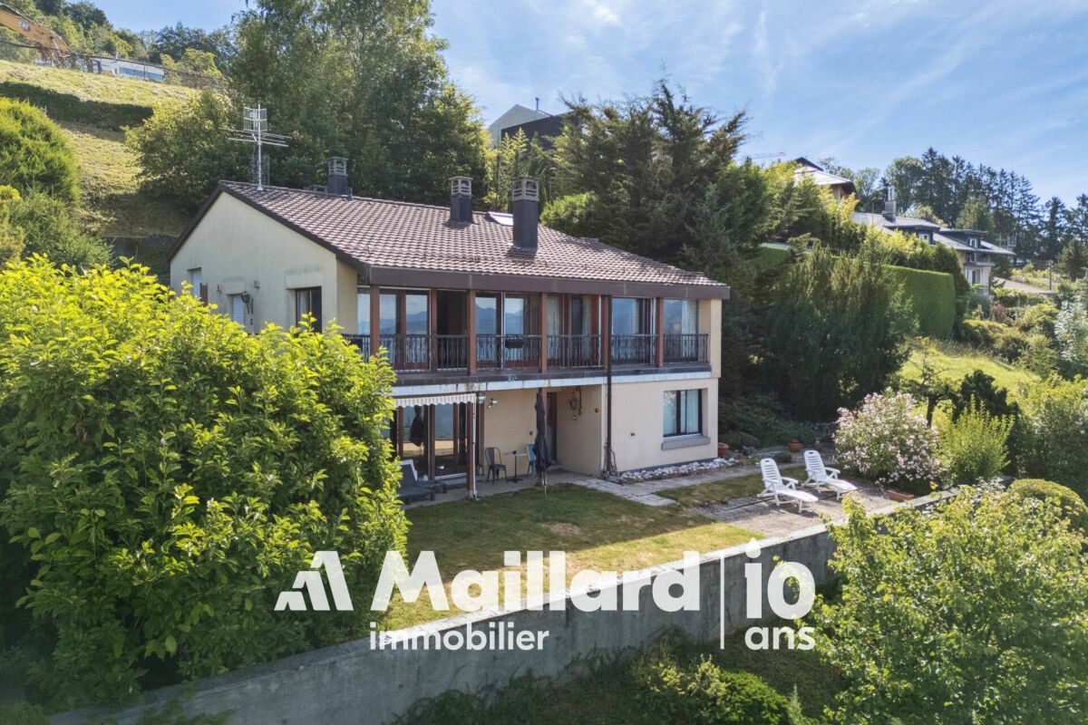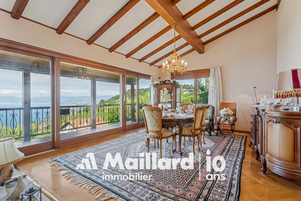 Idéalement située à Grandvaux, cette villa construite en 1982 dans un style traditionnel, bénéficie d'un emplacement d'exception sur une parcelle dominante de 1'368 m². Elle offre une vue panoramique et époustouflante sur le lac Léman et les Alpes, dans un environnement calme et verdoyant au coeur du Lavaux, région classée au patrimoine mondial de l'UNESCO.
