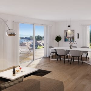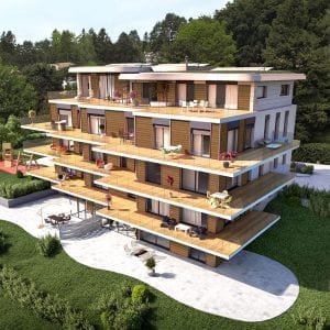 La résidence « Les Balcons de Pully » dispose d’une vue magnifique sur le lac Léman et les Alpes. Parfaitement intégrée à son environnement verdoyant, l’architecture du bâtiment allie modernité, confort et élégance.